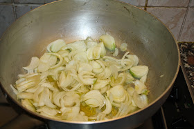 2. Pulite la cipolla e affettatela, fatela stufare dolcemente con un po' di olio d'oliva e di sale (unite poca acqua di tanto in tanto per evitare di usare un quantitativo eccessivo di olio).